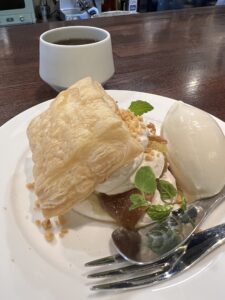 パイ生地のサクサク感と、りんご、冷たいアイスの組み合わせが最高でした…!