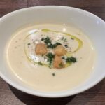 さつまいものスープ。上のパセリとオリーブオイル、めっちゃ効いていて甘味が抑えられて良かった。